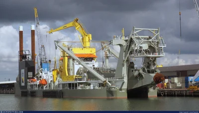 A Cutter Suction Dredger (CSD) is a powerful dredging vessel equipped with a rotating cutter head and suction pipe. It loosens hard seabed material and pumps it ashore via pipelines—ideal for land reclamation and deepening waterways.