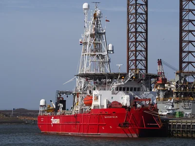 A Drill Ship is a self-propelled vessel equipped with advanced drilling equipment to explore and extract oil or gas from deepwater locations. It uses dynamic positioning to maintain stability without anchoring.