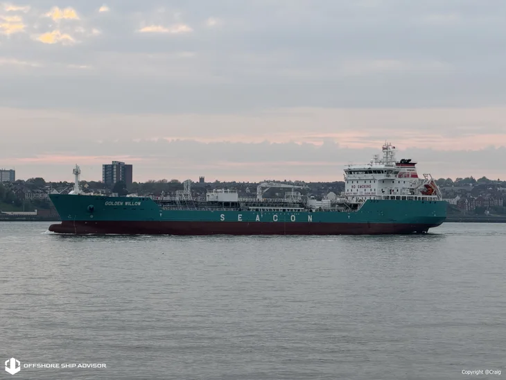 The GOLDEN WILLOW (IMO: 1055894) is a sophisticated Chemical/Oil Products Tanker designed for the efficient transport of liquid bulk cargoes. Currently sailing under the Liberian flag, this 2026-built vessel represents a modern addition to the global fleet, featuring a summer deadweight of 18,398 tonnes and a length overall (LOA) of approximately 150 metres. With its advanced technical specifications and gross tonnage of 11,961, the ship is well-equipped for regional and international trade, frequently operating across key maritime corridors such as the Irish Sea. As a versatile asset in the energy and chemical logistics sectors, the GOLDEN WILLOW maintains high standards of operational safety and efficiency in a demanding global market.