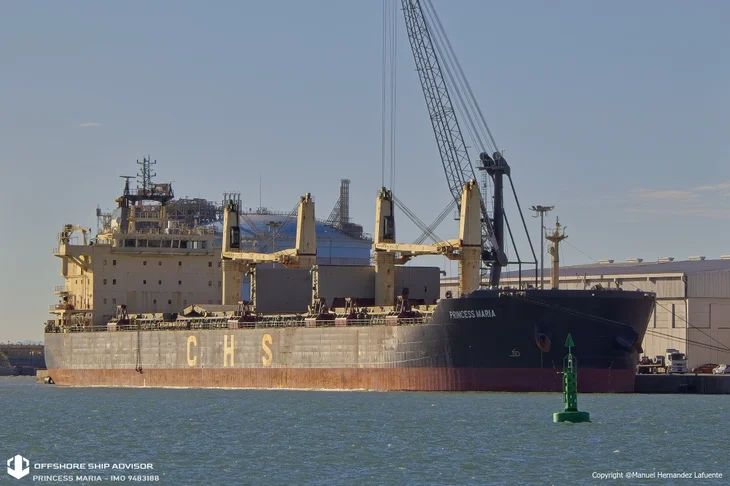 PRINCESS MARIA (IMO: 9483188) is a Bulk Carrier and is sailing under the flag of Marshall Is. Her length overall (LOA) is 187.88 meters and her width is 32.26 meters.