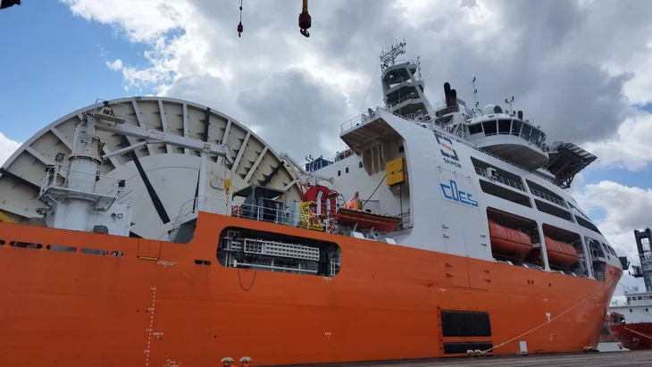 - Pipelaying System: The vessel is a DP3 reel-lay system capable of deploying rigid pipe (up to 18 inches in diameter), flexible products, and umbilicals at water depths of up to 3,000 meters. It features a 550-tonne vertical lay tower and two 275-tonne tensioners.